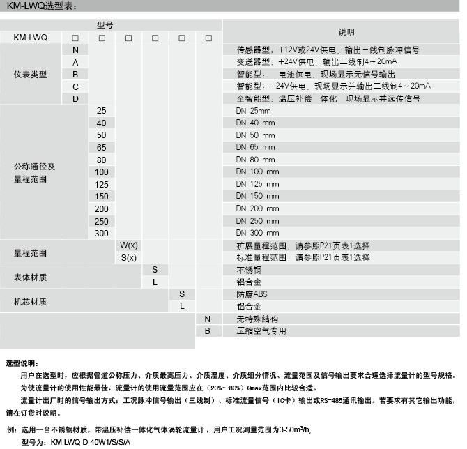 氣體渦輪流量計內置溫度、壓力傳感器和智能流量積算儀,通過微處理 單元對實時采集的流量、溫度、壓力信號按照氣態方程進行溫度壓力補 償,自動進行壓縮因子修正,然后將標準狀態下的體積流量直觀的顯示 出來。 技術參數: 以及溫度、壓力、電池電量等數據. 信號、RS485通訊協議. 任何信號輸出功能時可不用對儀表24VDC外供電,儀表自動切換到 內置鋰電池供電,電池電量可連續工作3年以上。 注:應用場合:精確計量或貿易結算。