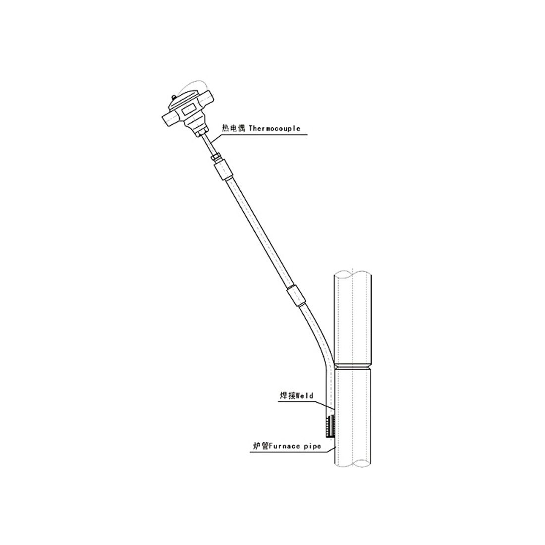 應用: 熱電偶保護管采用特殊結構,使之緊貼于裂解爐管內側,同時又不影響物料流動。適合于乙烯生產過程中裂解爐溫度測量與控制。