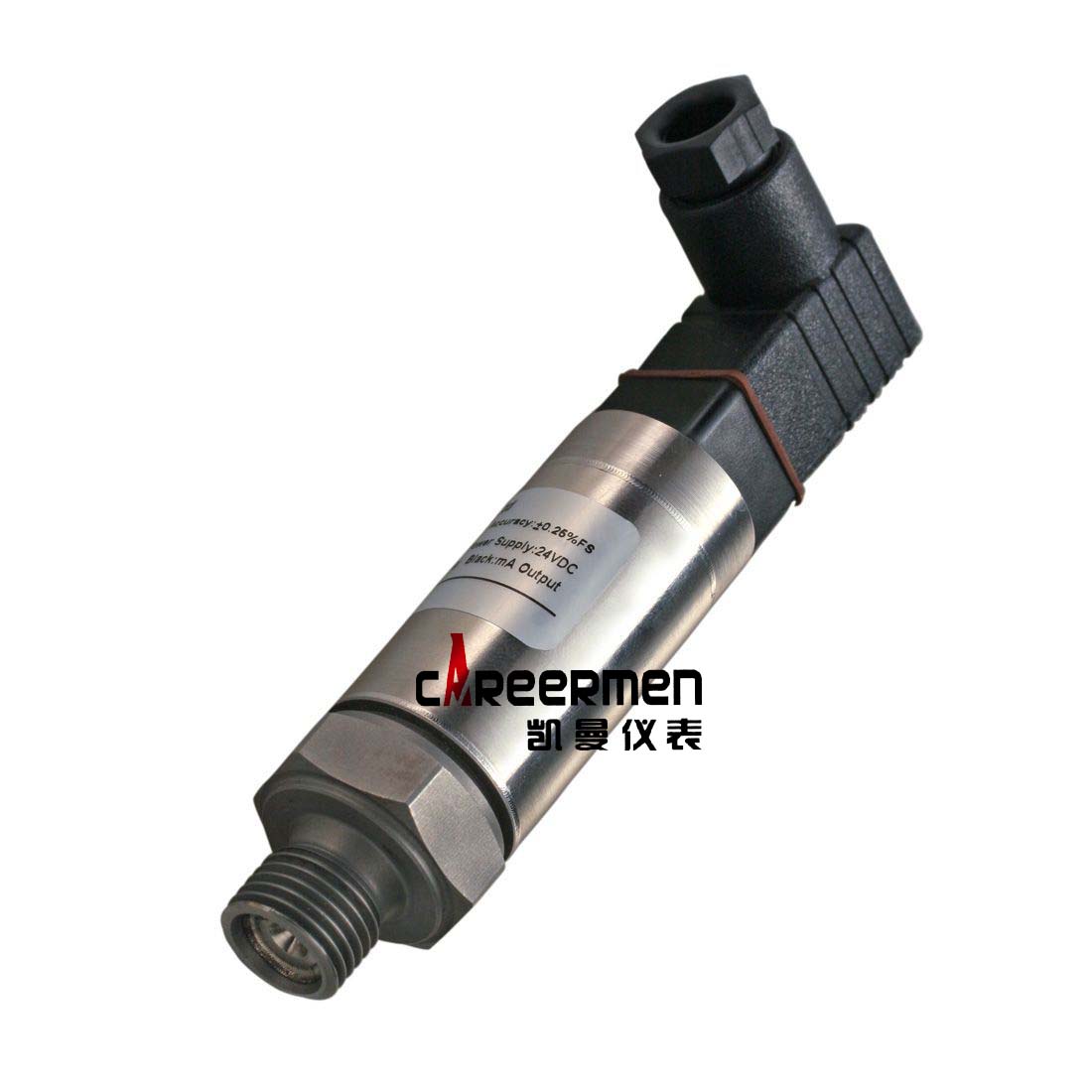 KMC320系列不銹鋼壓力傳感器簡介: 能感受規定的被測量介質的壓力,并按照一定的規律轉換成可用輸出信號的器件或裝置。通常由敏感元件和轉換元件組成。當輸出為規定的標準信號時(如4~20mA、0~10VDC),則一般稱變送器。被測量為壓力時稱不銹鋼壓力傳感器或不銹鋼壓力變送器。 KMC320系列不銹鋼壓力傳感器用途: KMC320系列不銹鋼壓力傳感器為大批量,低成本,民用及工業用產品建立了新的性能價格比典范。廣泛適用于對氣壓,液壓的檢測,甚至較惡劣的介質環境。如污水,蒸汽,輕度腐蝕性液體和氣體。本產品的壓力腔由一塊單件17—4PH不銹鋼加工而成。其標準壓力接口采用1/4”NPT外螺紋接頭,因而可以保證較好的密封性能。