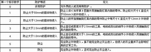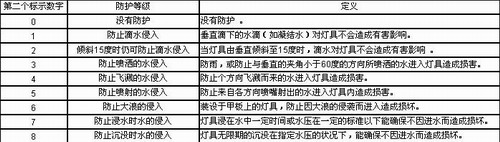 表二:第二個標示特性號碼(數字)所指示的防護程度