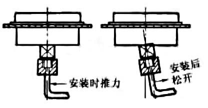 原因分析:該表為軸向帶邊壓力表,前邊固定在儀表的安裝面板上,儀表的接頭用導管連接,但由于導管的設計或下料、成形中的誤差,導管和儀表的軸向并不是同心的,雖然在安裝時可以用手推著導管進行壓力表安裝,但安裝后,手以松開,導管回到它的“自然狀態”,而將儀表的接頭拉成和表殼“不同心”(如圖)