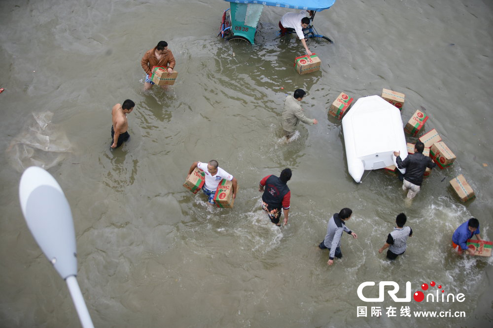 10月9日,浙江省寧波市余姚鳳山街道,志愿者在當地發放救援物資,還沒來得及發放,民眾中有人說了一聲“他們只發給本地..